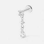Elegant labret med tre klare kubiske zirkonia i et let, vertikalt kædedesign. De funklende sten er forbundet med fine led, som skaber et smukt bevægeligt udtryk og tilfører dybde og elegance til ørestylingen.