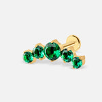 Elegant labret med en buet front bestående af grønne kubiske zirkonia i graduerede størrelser. Designet følger ørets form og skaber et balanceret og iøjnefaldende udtryk med dyb farve og flot lysrefleksion.
