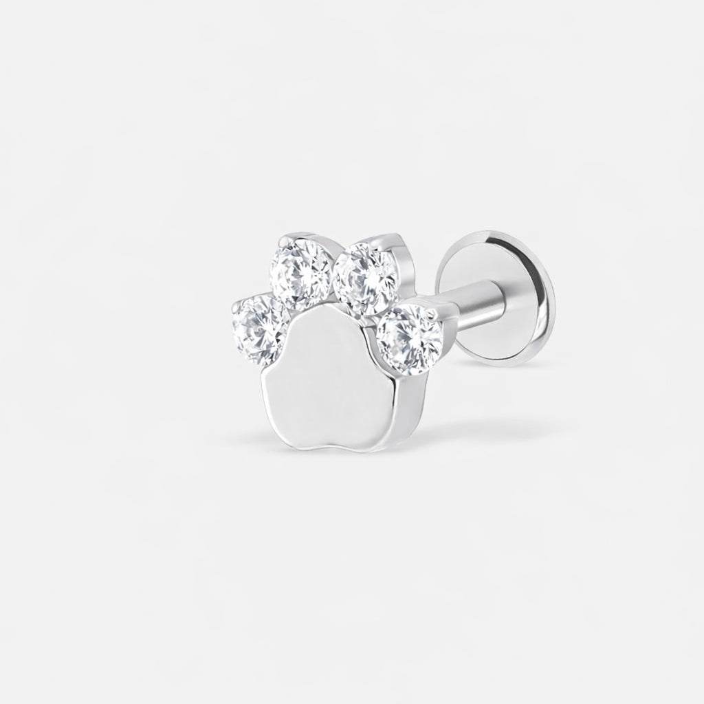 Sød labret med poteformet front og klare kubiske zirkonia-sten placeret som trædepuder. Det legende design kombineres med rene linjer og giver et fint, iøjnefaldende udtryk.